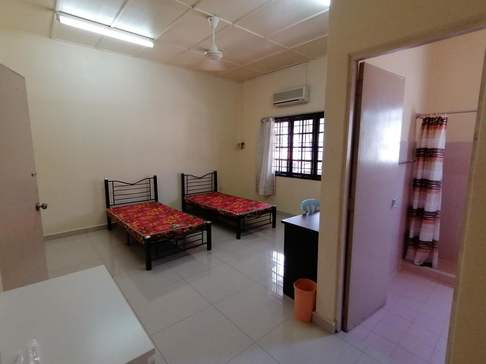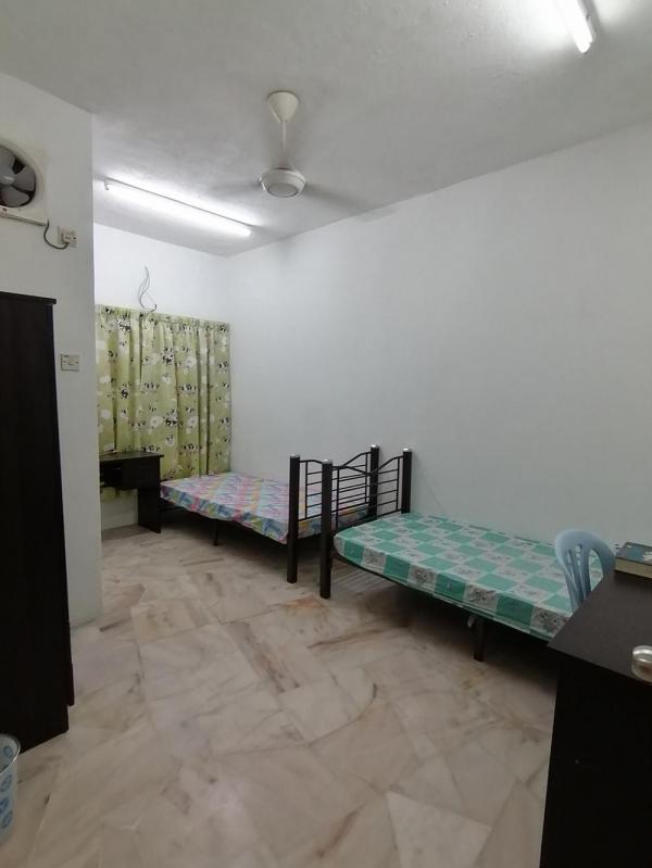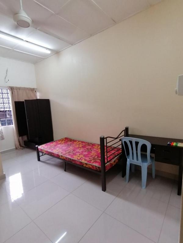 Room is equipped with wardrobe, good quality bed rack, mattress, study table, chair, KDK fan, Curtain,