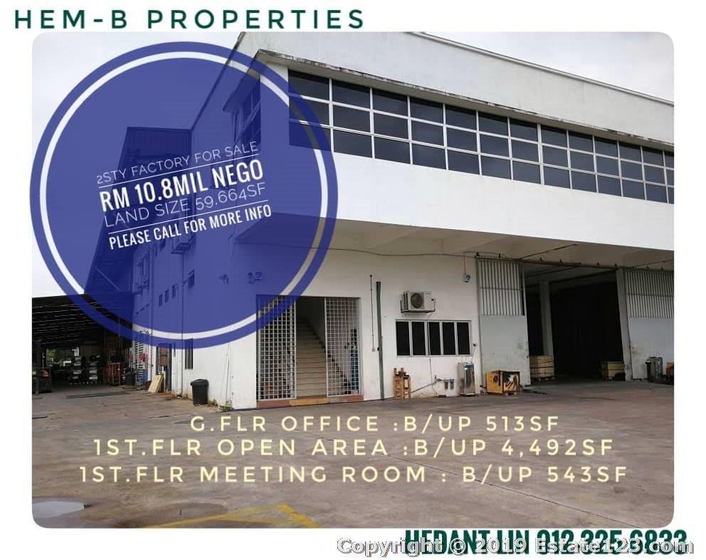 000AMP -FACTORY / WAREHOUSE CEILING HEIGHT 10 METERS -VERY GOOD LOCATION NEAR HIGHWAY EASY ACCESS -BELOW MARKET PRICE -MORE DETAIL PLEASE CONTACT HEDANT LIN 012-325 6833 REN 01690 THANK YOU