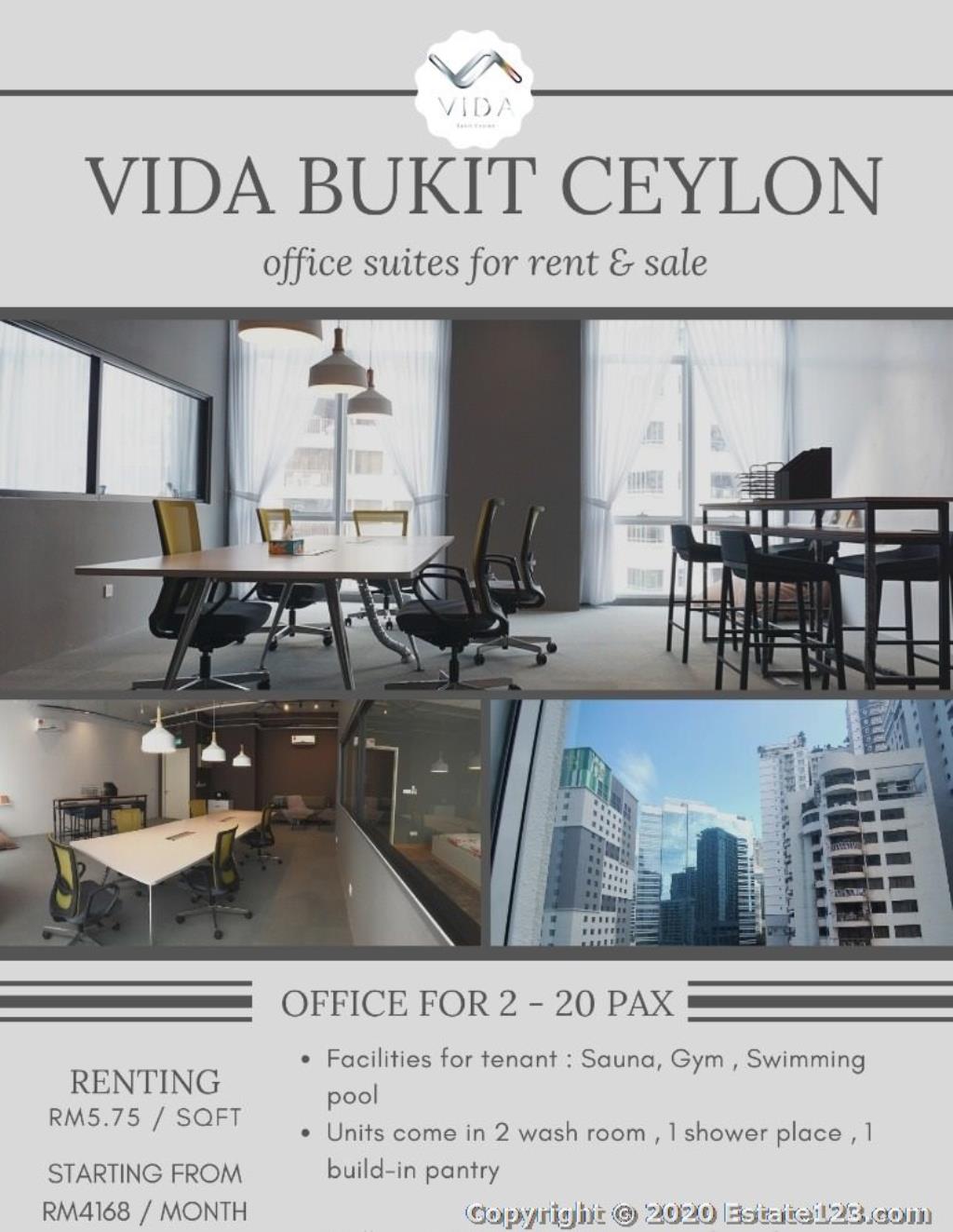 Commercial Office for Rent in vida bukit ceylon jalan ceylon bukit bintang kuala lumpur, 50200, Kuala Lumpur, Kuala Lumpur, Jalan Ceylon,