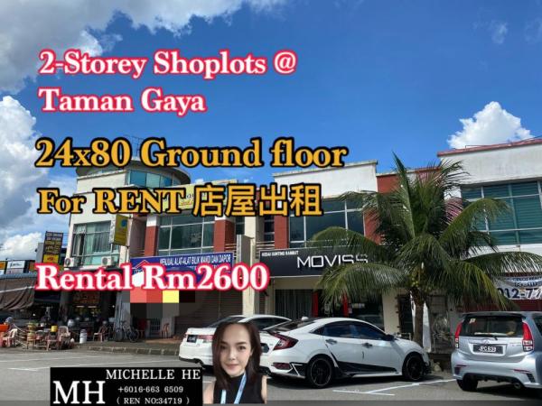 2-Storey Shoplots @Taman Gaya, Ulu Tiram Jalan Gaya 2x ➤➤Shop For RENT 店屋出租