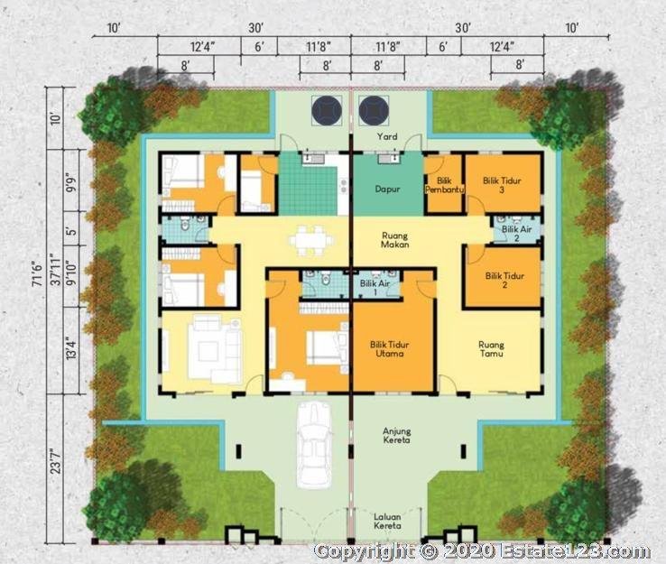Luas Tanah : 40’ x 71.6’ (2,864 sqft)