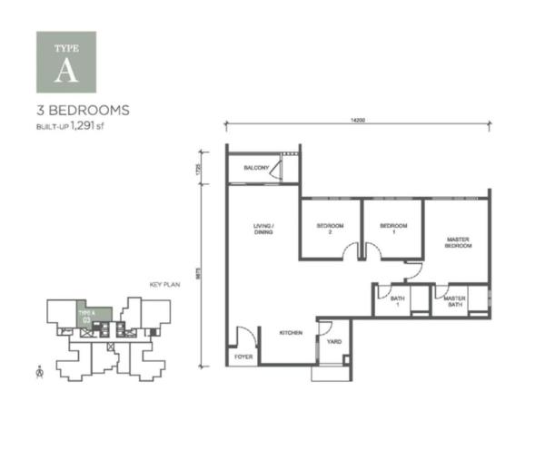 - Build up : 1,291 sqft