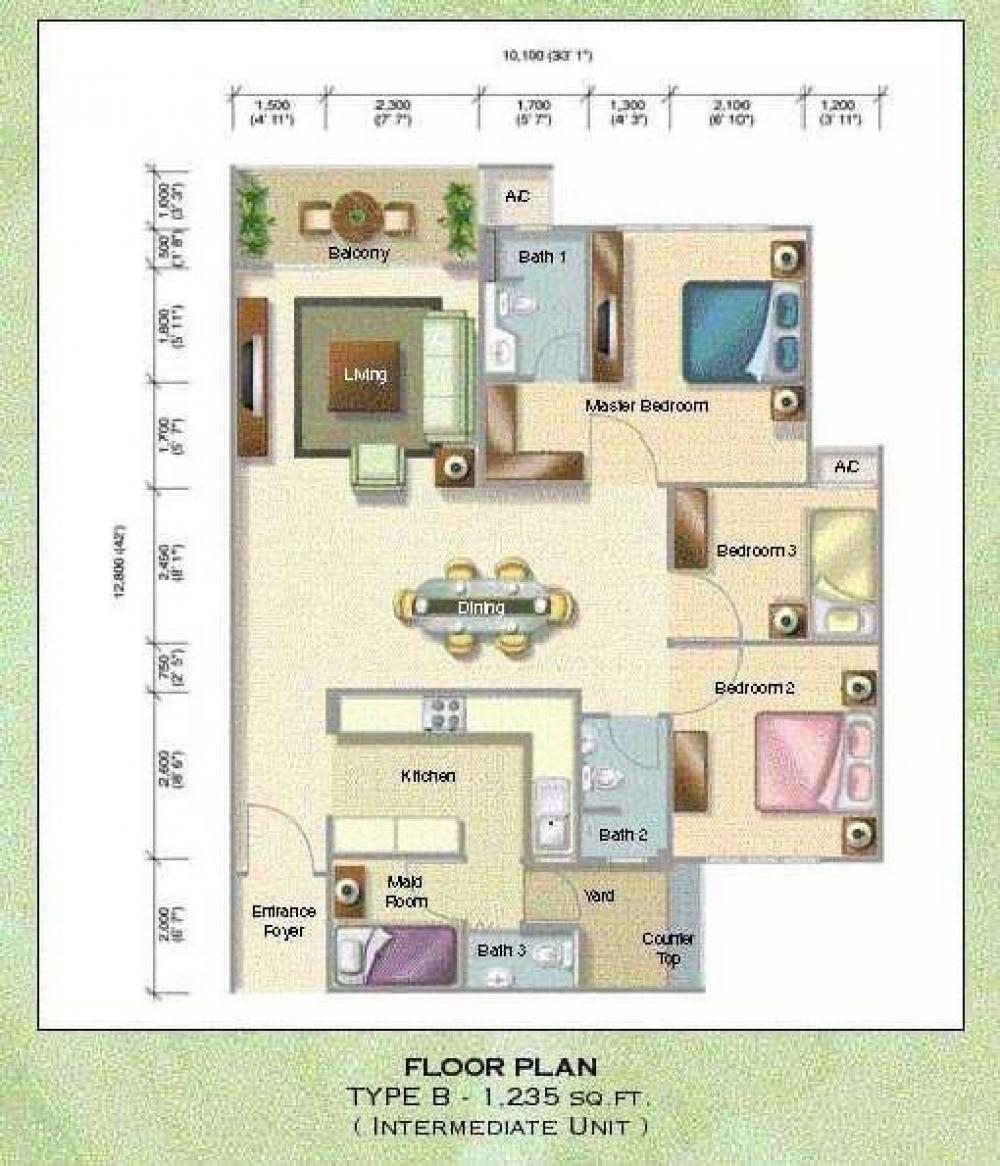 - Build up : 1,235 sqft