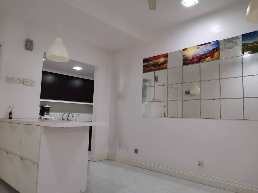 Direct Owner Property Type : Apartment Tenure : Freehold Title Code : Strata Land Title : Residential Size : 1063sf Bedroom : 2 Bathroom : 2 Balcony : 1 Yard : 1 Kitchen : 1 dry & 1 Wet Dinning : 1 Facilities : 24/7 Security with all floors CCTV, everyday Cleaning & trash, children playground. Environment : Peaceful & Quite, Good Neighbourhood, Pets Friendly & Children Friendly Internet : Available Unifi port Parking : Yes Building Level : 12 Floors Lift : 2 units Passenger & Cargo Block : C1 Level : 08 Type : S (Luxury) Furniture : Partially Flooring : white tiles (whole house) Wall Paint : Matt Gloss white (waterproof) easy clean & wipe Items remain: Sofa Ceiling Fan wall fan Bar Table with storage Mirror wall features Kitchen Cabinet