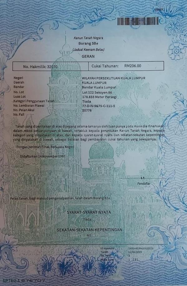 Kuala Lumpur, Titiwangsa, 100'x20'